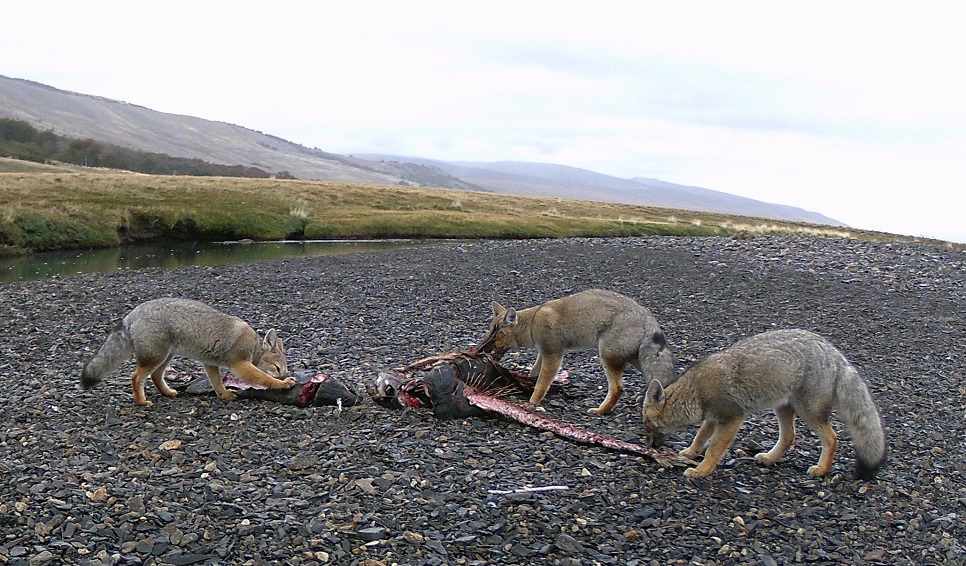 La invasión del salmón Chinook comenzó hace unos 45 años y su impacto principal se da directamente en los ecosistemas fluviales. Este proceso comienza con la alteración de las condiciones del agua a través de la excreción de productos metabólicos y la deposición de huevos. Sin embargo, el fenómeno más significativo ocurre tras el desove. Los salmones son especies semélparas: al igual que el trigo, invierten toda su energía en un único evento reproductivo, y mueren. Este ciclo biológico genera un despliegue masivo de biomasa: “Estamos trabajando junto con ONGs como la Fundación Anfibia, la Secretaría de Pesca de Santa Cruz y APN, con el apoyo de Patagonia CO y en algunos ríos donde realizamos censos con drones estimamos hasta 20 toneladas de carcasas en un sector muy pequeño del río”. Esta enorme cantidad de biomasa es aprovechada por la comunidad de carroñeros para alimentarse, los cuales fueron captados por cámaras trampa colocadas por Ciancio y colaboradores a lo largo del cauce del río para poder estudiar con precisión el comportamiento: “Para entender mejor cómo se alimentan los carroñeros, medimos la biomasa que consumen de cada carcasa pesándola luego de la visita de uno o varios individuos. Además tomamos muestras de distintos tejidos para estimar el aporte en su dieta por parte de los salmones utilizando isótopos estables. Estos actúan como 'etiquetas químicas' que nos permiten distinguir si un nutriente proviene del mar (salmón) y qué fracción de la dieta representa. Nos permiten también rastrear el camino de los nutrientes, incluso cuando se diluyen en el agua y son integrados por los productores primarios, llegando finalmente a toda la trama trófica”, completa el investigador del CENPAT.