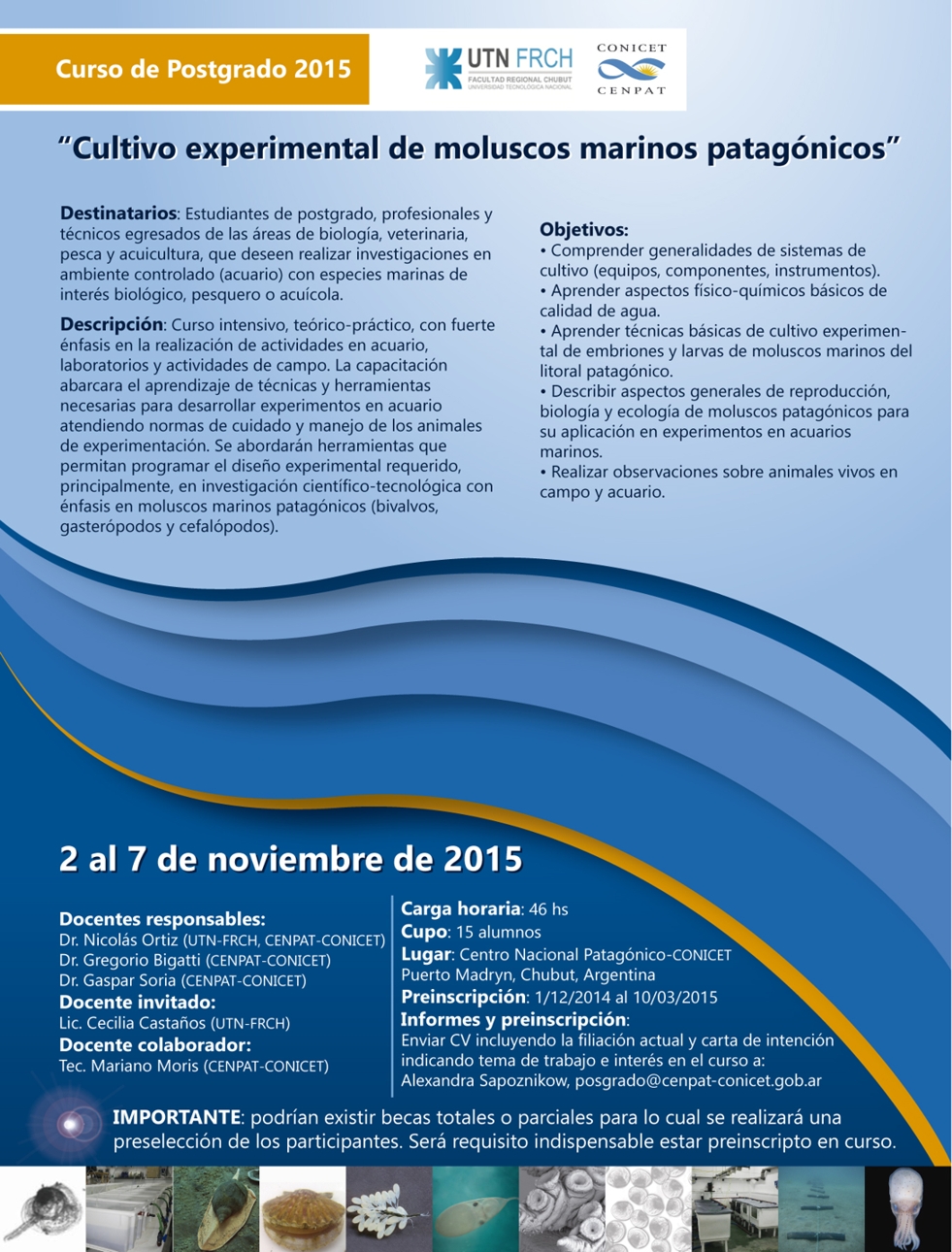 Lugar y fecha de realización 2 al 7 de noviembre de 2015, Cenpat, Conicet