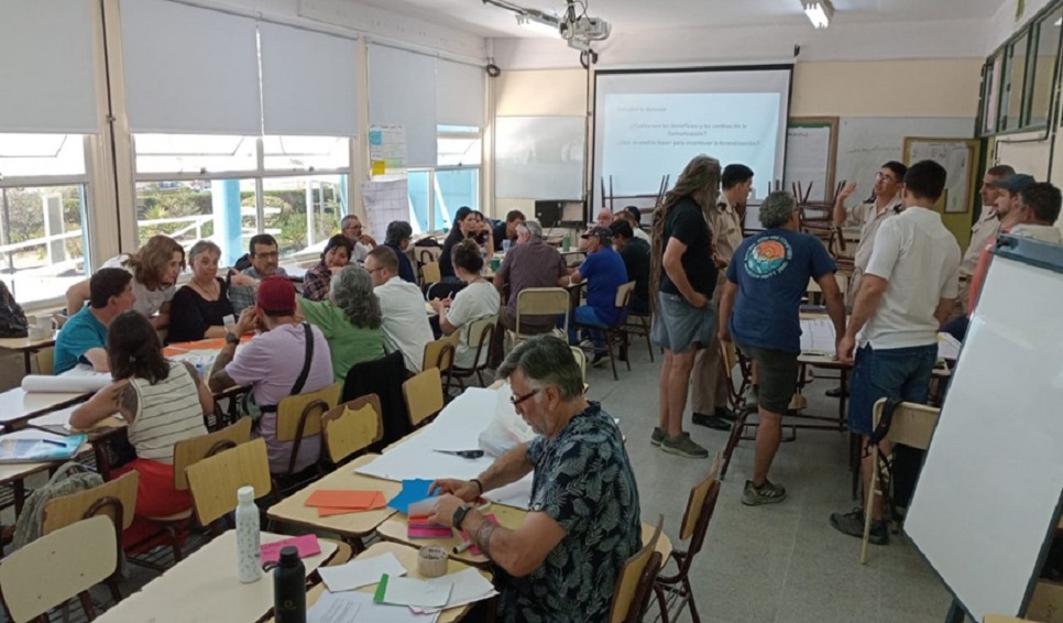 Otro aspecto del trabajo conjunto entre científicos/as y pescadores se desarrolló durante las XII Jornadas Nacionales de Ciencias del Mar, en diciembre de 2025 en Puerto Madryn, donde se llevó a cabo un Taller sobre el tema "La pesca artesanal en el Golfo San Jorge y Península Valdés: Desafíos para la formalización de la actividad", del que participaron pescadores, científicos/as, y representantes de instituciones públicas y de organizaciones no gubernamentales y de la sociedad civil. Los resultados de los estudios llevados adelante por el grupo de científicas/os permitieron presentar una caracterización de la pesca artesanal en las localidades de Puerto Deseado, Comodoro Rivadavia, Camarones y Península Valdés desde una perspectiva multidimensional, la que sirvió como disparadora de la discusión y el trabajo conjunto.